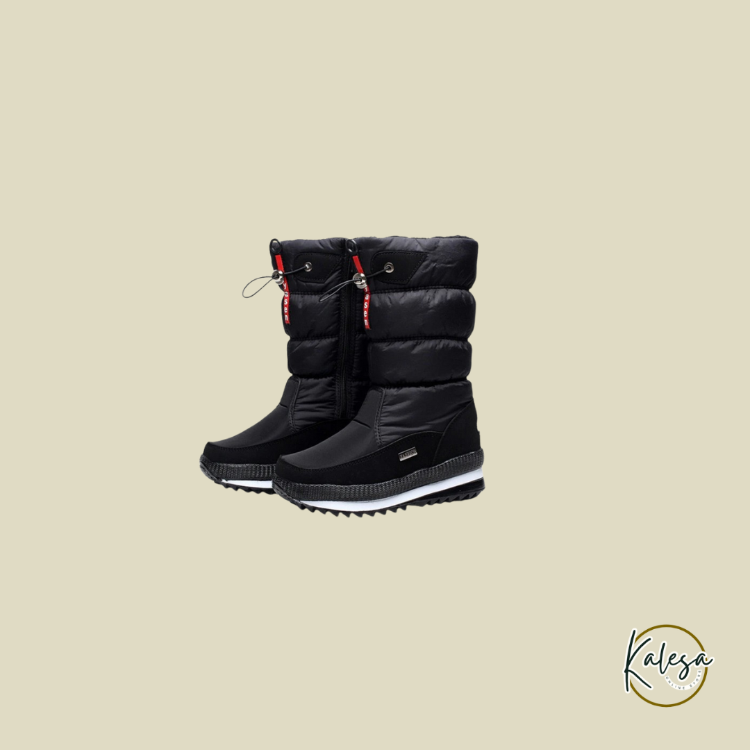 Minimalistisch design met een moderne hoge schacht en subtiele stiksels. De buitenkant is van waterafstotend materiaal met een zachte, gewatteerde binnenvoering voor ultiem comfort – verkrijgbaar in stijlvol zwart, paars of rood.